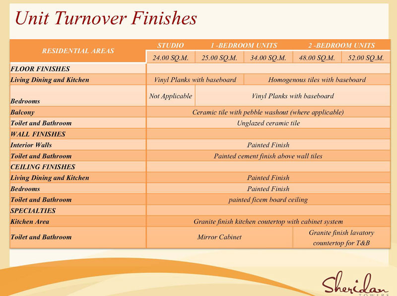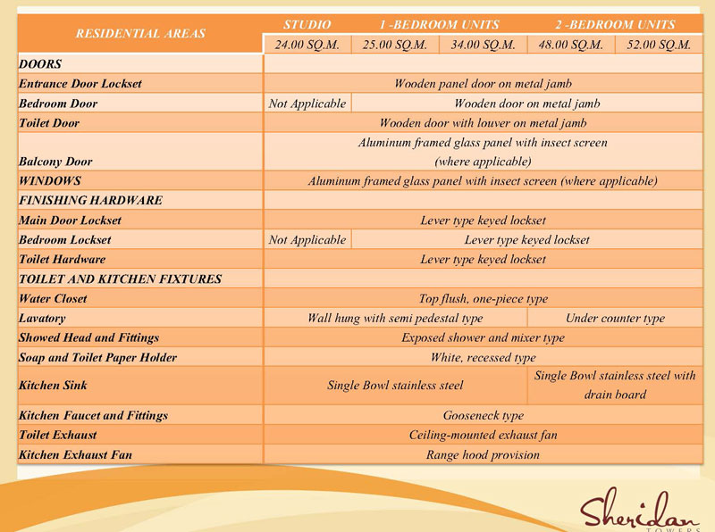 Unlike other condominiums in the area, Sheridan Towers has efficiently-planned units and resort-inspired amenities at a reasonable price (per square), giving value to your hard-earned money.