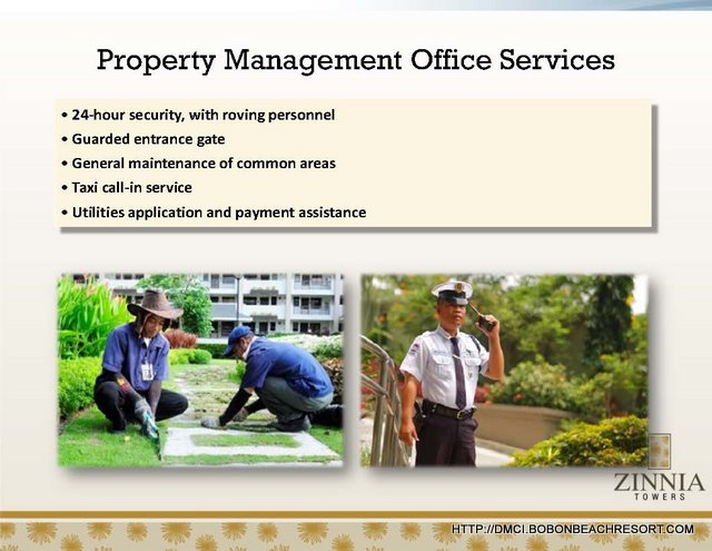24 hour security with roving personnel, Guarded entrance gate, General maintenance